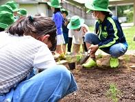 令和になって、新たに6年生となった27名が、育苗ポットから花壇に植え替えを行いました。