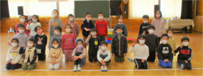 ①2年生の歌 ②わたしたちの村のすてき発表 ③こぐまの二月合奏という内容でした。「2年生の歌」は音楽の時間に歌った曲の中から子どもたちに一番人気があった「あのね、あのね、のねずみは」をみんなで話し合い、自分たち2年生のことに歌詞を替えました。所々にジェスチャーをいれてとてもかわいく歌いました。次の「わたしたちの村のすてき」では学校探険や見学旅行で見つけた南阿蘇村のすてきだなと思ったところについて班ごとに発表しました。最後は、いろいろな楽器を使って合奏をしました。