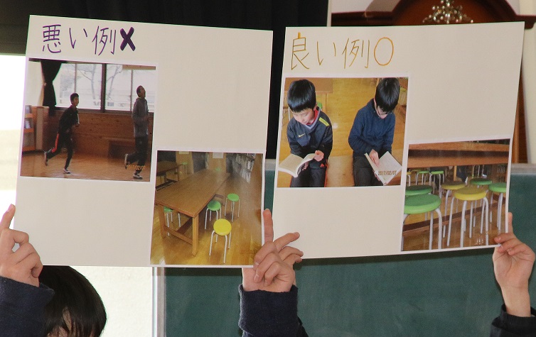 「読書の豆まき」の取り組みが大盛況に終わったことを報告し、