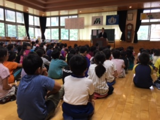 終業式では、校長先生から子どもたちに、1学期のがんばりをねぎらう言葉がたくさんかけられました。