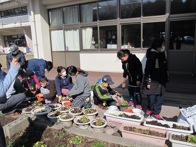 今日は、午後から、地域の皆さんに花の苗を配りにいきます。
