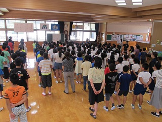 終業式では、校長先生から子どもたちに、1学期のがんばりをねぎらう言葉がたくさんかけられました。