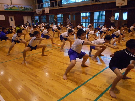 全校児童が、朝から体育服に着替えて準備万端。