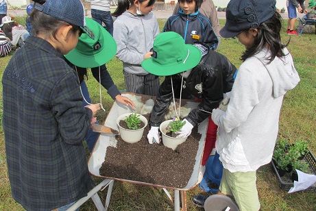 今日は、秋晴れの空のもと、パンジー、ナデシコなど色鮮やかな花を植える時間を過ごしました。