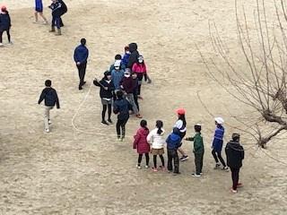 低学年は、あの有名な一心行桜の植わっている公園で、高学年は、白川水源にでかけていきました。