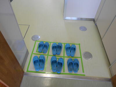 校内をまわっていたら、2年生の男子がトイレのスリッパをきれいに並べてくれていました。