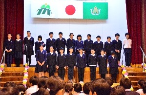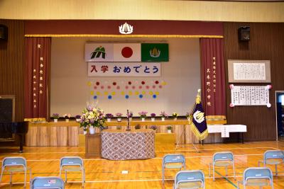 いいお天気でした。25名の1年生が入学してきました。担任の先生から名前を呼ばれると「はい」と返事をして立つことが出来ました。式の間も静かに座ってしっかりお話を聞いていました。少し緊張していたようです。