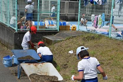 最後は、保護者の皆さんと一緒に運動場へ。