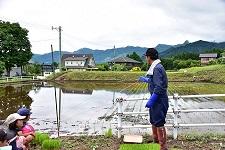 古澤さんの説明を聞いた後に、子どもたちが田んぼの中に入っていきました。