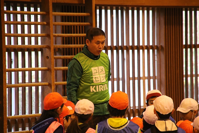 体育館でのウォーミングアップや簡単なゲーム、教室での夢トークなど子どもたちのハートをわしづかみ。