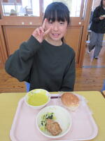 給食月間の最終日。本日の給食は、22日に引き続き、献立コンクール最優秀賞作品の本校児童考案メニューでした。