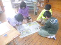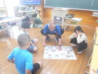 まず、アップとルーズの意味理解のために、新聞に掲載されている写真をアップとルーズにわける活動が行われていました。グループごとに、「これはアップだね」「こっちは全体が写っているから、ルーズじゃない?」と言いながら、判別しているところでした。