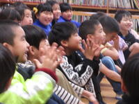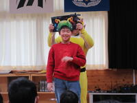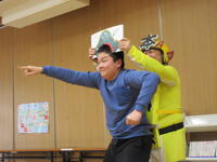 今年度も、「おはなしマン」さんによる読み聞かせを行いました。低学年と高学年、別日に実施しましたが、どちらも大盛り上がり!子供たちの心をグッとつかむ「おはなしマン」さん、さすがです!途中、手品?!も披露され、おまじないをかけると、あっという間にぶどうジュースがグレープジュースに変わり大爆笑でした。