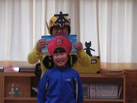 また、「けっこんしき」という、おでこはめ絵本が登場すると、子供たちが色々な人に変身~!みんな笑顔いっぱいになりました。