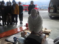 最後に、救急車と消防車の設備について、くわしく説明していただきました。この地域の人々のくらしと命を守ってくださっていることに感謝ですね。たくさんの学びがあった消防署見学でした。将来、この中から、消防士さんになっている人がいるかもしれませんね。