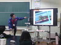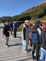 国土交通省の方々が来校され、まず砂防堰堤がどういうものかについて座学がありました。土石流や土砂災害を防ぐために設置されたものです。土砂や流木を一時的に堰き止め、道路や集落に流れ出るのを防いでくれます。スライドや動画等で、わかりやすく説明いただきました。その後、東下田付近にある砂防堰堤を見学に行きました。想像以上の大きさに驚いていたそうです。私たちの命とくらしは、このような形で守られていることに気づくことができました。