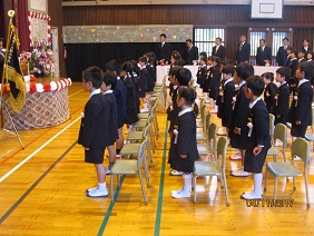 緊張した顔の新入生を、温かな拍手で迎え入れる118名のお兄さん・お姉さん。