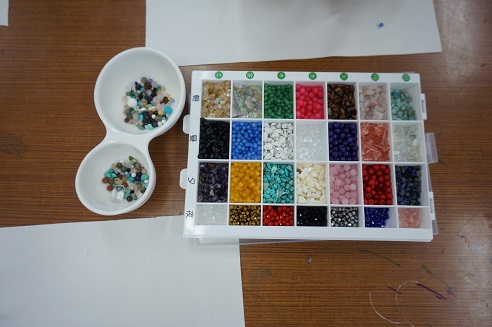 今回のレクリエーションは、天然石を使ったブレスレットづくりを行いました。