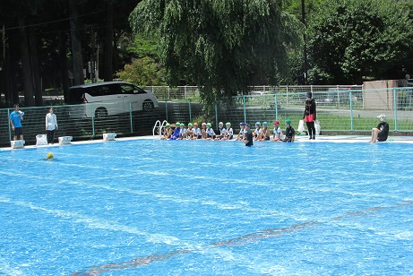 最後は、みんなで水遊び。消防士の保護者の方に、おぼれそうになったときの、浮き方なども教わりました。夏休みを前に命を守るための大切な勉強ができました。