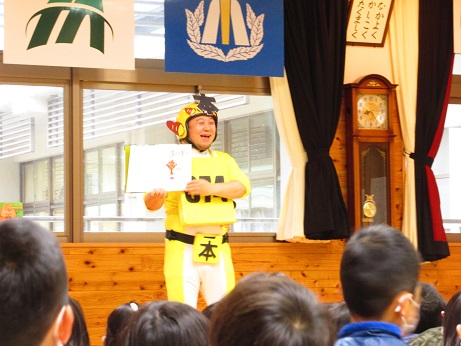 今朝は、1,2,3年を対象とした読み聞かせ会がありました。