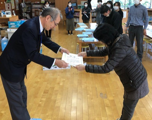 ←学校の代表として藤岡先生に表彰状を受け取っていただきました。