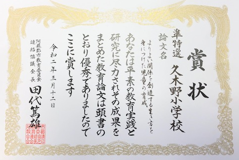 先日、学校で作成した教育論文が、評価され『準特選』に選ばれました。