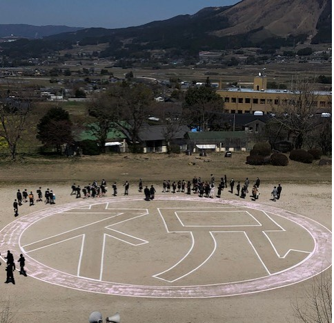 運動場にできた「祝」の文字。 卒業生の皆さん、喜んでいただけましたか?