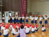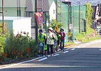 夏休み明け3日間、更生保護女性会の皆さんに、登校の見守りをしていただきました。高学年の子が下級生の歩く速さ等を気にかけ、何度も振り返って登校してきていることにとても感心されていました。交差点付近から学校まで一緒に歩いて見守りをされています。今後も隔週ぐらいで、月曜日に見守りをしていただけるそうです。