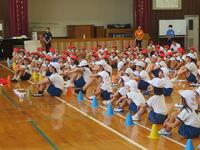 このあとの結団式では、団長さんから順にリーダー全員が思いを伝えていきました。早速、三三七拍子の練習が始まり、赤団・白団ともにやる気満々です!しっかり返事!てきぱき行動!みんな、がんばってほしいです!