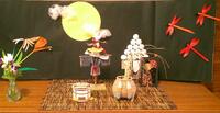 でも、学校の玄関だけは、秋らしさが漂っています。お月見、赤とんぼ、さんま、稲、かかし・・・。ほっこりしますね。