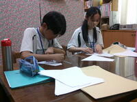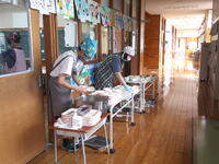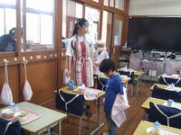 本日から三日間の体験学習です。初日は主に低学年に入ってもらい、担任の先生と一緒に丸付けをしたり、給食の準備をしたりしました。また、本日はまな望デーで、午後は子供たちがいないので、先生たちにインタビューをしたり、作業のお手伝いをしてくれたりと、もりだくさんの一日になりました。二人のことを低学年の頃から知っている先生とは、小学生時代の思い出話に花が咲いていました。