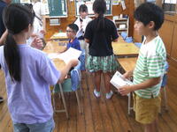 中には、動作化も入れて、寝転んだがまくんやお手紙を運ぶかたつむりくんを表現している人もいました。「もっと、こうした方がいいんじゃない?」とか、「こっちに動いた方がいいよ」「そうだね」などの声が交わされていました。