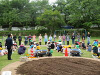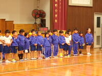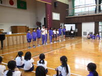 先週、校内持久走大会を行いました。前日の夜に雨が降り、実施できるだろうか・・・と心配していたのですが、暗渠工事のおかげで、運動場の水はけがよく実施することができました。それでも、水たまりが数か所ありましたので、先生方とスポンジで水分をとりました。よし、これで準備万端!青空のもと、開会式を行いました。保健・体育委員会の子どもたちの進行で始まりました。準備運動もしっかりと!