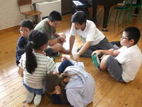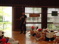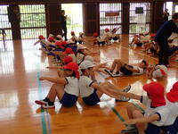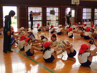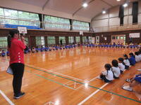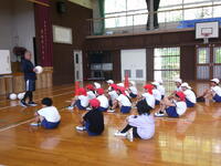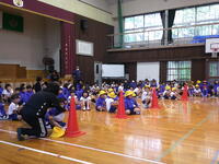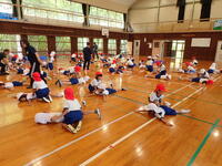 毎月、大村さんによる運動支援事業が行われています。子供たちをいつもノリノリにさせてくださいます。今回も、楽しく活動していました。二人組で押し相撲をしたり、協力して立ち上がったり、飛んだり跳ねたりと、様々な動きがありました。