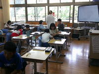 社会福祉協議会の方々から、まず「社会福祉協議会とは・福祉とは何か」について、お話がありました。福祉は、「みんなの普段のくらしの幸せをつくること」と説明があり、具体的にどういう場面かもお話しいただき、子供たちはしっかりと聞いていました。その後、耳が聞こえにくかったり、目が見えなかったりする状況を体験しました。また、点字づくりにも取り組み、自分の名前やいろいろな言葉を丁寧に作成していました。