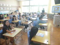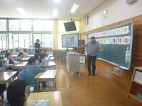 国土交通省の方々が来校され、まず砂防堰堤がどういうものかについて座学がありました。土石流や土砂災害を防ぐために設置されたものです。土砂や流木を一時的に堰き止め、道路や集落に流れ出るのを防いでくれます。スライドや動画等で、わかりやすく説明いただきました。その後、東下田付近にある砂防堰堤を見学に行きました。想像以上の大きさに驚いていたそうです。私たちの命とくらしは、このような形で守られていることに気づくことができました。