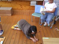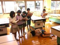 中には、動作化も入れて、寝転んだがまくんやお手紙を運ぶかたつむりくんを表現している人もいました。「もっと、こうした方がいいんじゃない?」とか、「こっちに動いた方がいいよ」「そうだね」などの声が交わされていました。