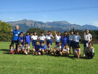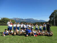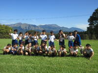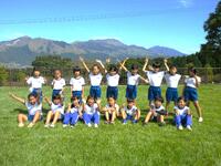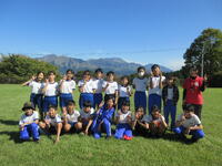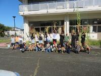 活動後、学年写真を撮りました。晴れ渡った空の下、はい、チーズ!
