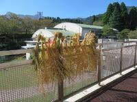 刈った稲をベランダに持ち込み、しばらく干します。お日様の力で、少しずつ乾燥させていきます。干している間に、稲藁の栄養が実に移ってきますよね。