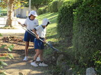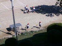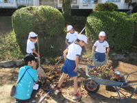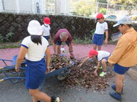 運動会練習時から落ち葉がちらほら。今月に入り、落ち葉がさらに増えてきました。体育の学習後に、4年生みんなで力を合わせて、せっせと片付けてくれました。おかげで一気に運動場や植え込み、通路がきれいになりました。