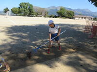 見てみると、4年生が竹ぼうきや一輪車、トンボを使って、運動場や通路をきれいにしていました。