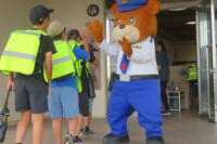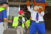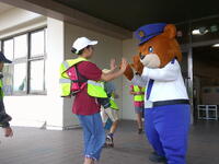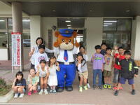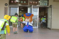 帰り間際,、職員玄関近くにいた子供たちで、カシャ!人気者のゆっぴー君でした。横には、「スマホにフィルタリングをかけよう」ののぼり旗を持った警察の方もいらっしゃいました。子供たちを犯罪や事故から守るために、今日もゆっぴー君はがんばっています!