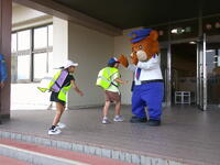 15日(水)の登校時、ゆっぴー君が本校に来てくれました。子供たちが登校する前から、スタンバイ。元気なゆっぴー君です。