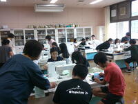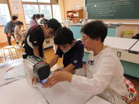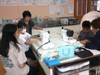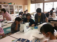 午後は、5年生。ミシンの使い方の導入でした。縫い始める前までが大変ですよね。上糸・下糸を通すところで困ってしまうのですが、そこは先生方が素早くサポート!5年生も、上手にまっすぐ縫うことができていました!