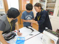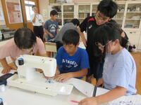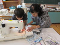 まず、午前中は6年生に入っていただき、ナップサックを製作しました。6年生はミシン経験者ではありますが、やはりサポートがあると、断然早い!ほとんどの人が完成したそうです。よかったですね!