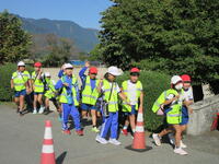低・中・高学年と歩く距離が異なり、高学年が一番長いので、スタートも高学年からでした。いってきまーす!(写真は中学年です)