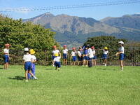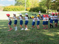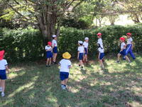 アスペクタに到着して、縦割り班ごとにいろいろな遊びを楽しみました。おにごっこやはないちもんめ、大繩とび、おおかみさん、今何時?など、様々でした。