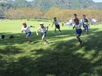 お腹一杯になった後は、自由に野原を駆け回っていました。転がる人もいれば、木陰でおしゃべりを楽しむ人もいました。さわやかな秋の風を感じながら、それぞれ楽しんでいました。