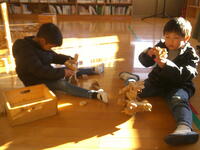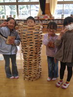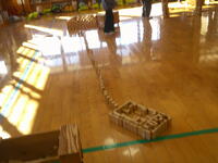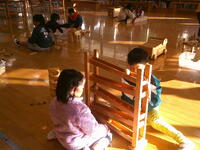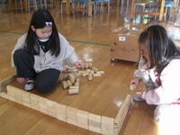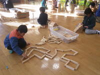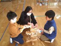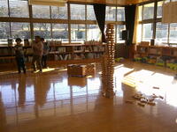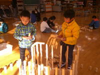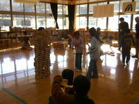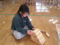 今回の放課後子供教室は、県の社会教育課から貸し出していただいた「積み木」を使っての活動でした。とても手触りが良く、けがをしないように角も丸くけずってありました。子供たちは、様々な形の積み木を並べたり積んだり転がしたりと、思い思いに楽しんでいました。