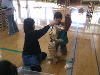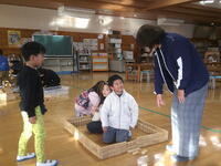 毎月、大村さんによる運動支援事業が行われています。子供たちをいつもノリノリにさせてくださいます。今回も、楽しく活動していました。二人組で押し相撲をしたり、協力して立ち上がったり、飛んだり跳ねたりと、様々な動きがありました。